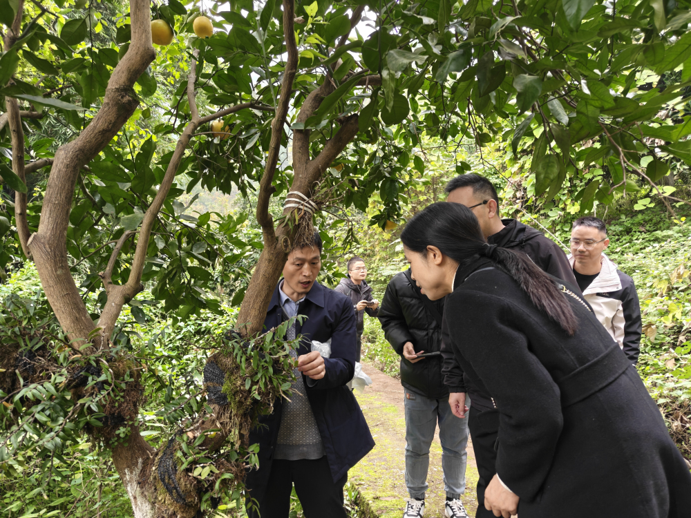 2025年12月9日,万州区科协党组成员、副主席牟万平一行调研我院甘宁林下石斛仿野生种植基地。